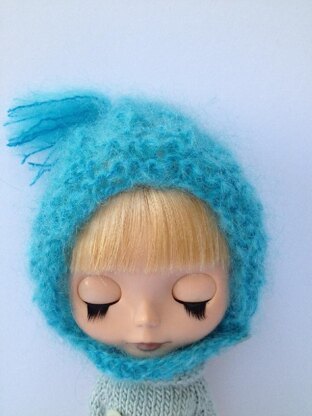 This pattern uses the old fashioned mohair yarn that we all knit as sweaters in the 80's. Cute little pixie hat for your doll.