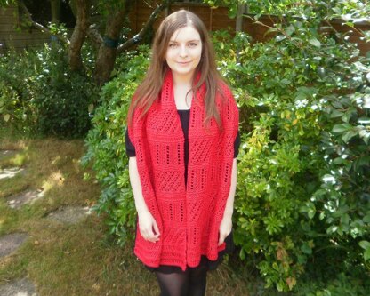 This lace shawl has stripes of differently textured lace along its length and delicate dropped stitch hems. The finished shawl is 68 inches long and 18 inches wide.There is also a pattern included for a narrower 9 inch wide version that could be worn as a scarf.