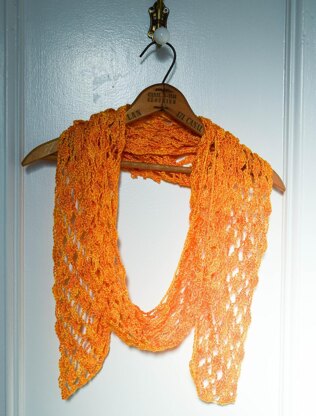 A simple, delicate lace pattern and the soft tencel yarn combine to create a transitional weather scarf with excellent drape.