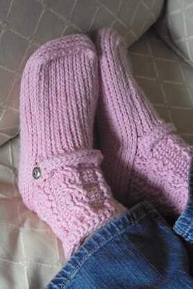 Design features knit-look ribbed toe & strap. Cabled cuff may be made to any height.