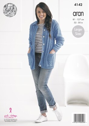 Ladies’ Jackets in King Cole Big Value Recycled Cotton Aran - 4142 - Downloadable PDF