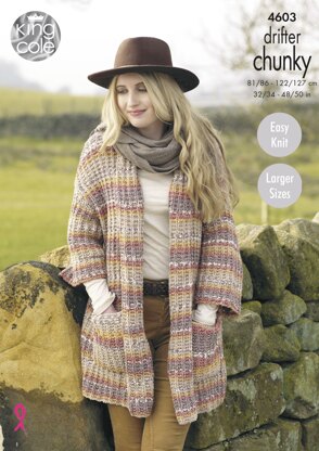 Ladies Jackets in King Cole Drifter Chunky - 4603 - Downloadable PDF is a Intermediate Knitting pattern by King Cole, available as a Downloadable PDF and includes instructions in English. Super fun to make, this pattern could be your next masterpiece!