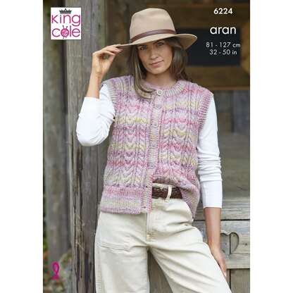 Ladies Round and V-Neck Waistcoats in King Cole Crescendo Aran - P6224 - Leaflet