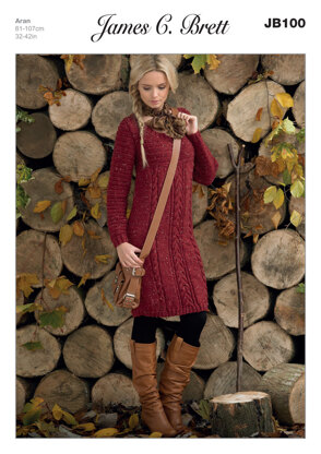 Ladies' Sweater Dress in James C. Brett Rustic with Wool Aran - JB100