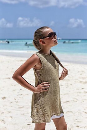 The Lady Aviete women's top is worked from the bottom up to the armhole in one piece in back- and forth rows, from where on it is continued in the round. At armhole level, work is divided, and front and back are worked separately, then shoulders are joined using the three-needle bind-off method.