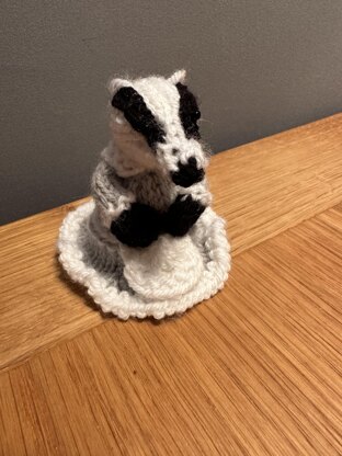 This little lady badger can multi-task. She not only looks lovely in her dress, but she can dress up for the cold with her bonnet and hand-muff; play the keyboard and cymbals, nurse her baby and pick flowers from the garden. She can hide a Ferror Rocher/Lindor type chocolate under her skirt or you can fill her with stuffing and hang her as a decoration. Why don't you mix and match with the badger pattern and create your own badger family band?