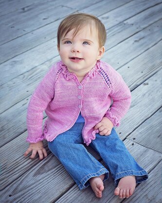 This pattern is knit bottom-up. The only seams are under the arms and stitching the ruffle ends together Bottom ruffle is worked as you knit. Sleeve and neck ruffles are worked separately, then joined to main fabric by working sts together from ruffle and sleeve or neck. Raglan decreases are worked on WS rows.