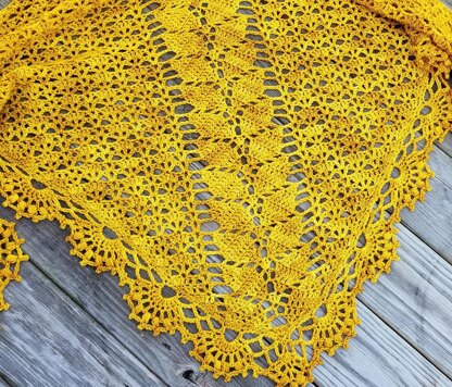 Lady of Lórien is a lovely, delicate shawl inspired by childhood days spent pretending to be Lady Galadriel in the golden forest of Lothlórien. This DK weight shawl is so much easier and quicker to make than it looks, and uses combinations of simple stitches to create its delicate, lacy leaf-trellis pattern. Drape yourself in this cloak of Mallorn leaves, do a twirl, and become the Elven queen you’ve always dreamed of!