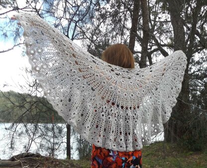 I would suggest this pattern to be appropriate for intermediate crocheters, though adventurous beginners would probably manage it. There are a couple of diagrams to help decipher how to do the rings - once these are worked out, the rest of the shawl is easy.
