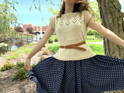 Lady Penny will keep you cool and stylish during the summer heat. This is knit top down, mostly in the round. This works perfectly with silk, bamboo, and cottons for a pretty drape.