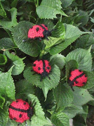 I know there are a lot of ladybird patterns out there, but I thought I would have a go. My pattern is very simple, knitted on two needles, and flat. There is a little bit of simple embroidery to make the spots and line up the middle.