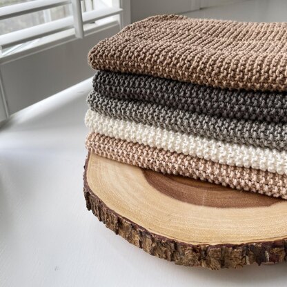 Did you know Lagom means "just the right amount" or "just enough"? That word feels so appropriate for this pattern set -- the broken garter stitch variations for each dish towel feel like "just the right amount" of texture and pattern.