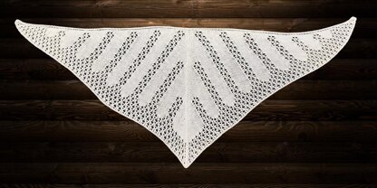 This shawl was inspired by a winter trip to Banff National Park in Alberta, Canada a few years ago. The top-down triangle is worked in sportweight yarn for a large and cosy shawl that is perfect for winter strolls, whether on a frozen lake or on solid ground! Single and double yarnovers create tracks of large eyelets through the sweep of pure stockinette. This 8 row repeat lace pattern is fun to work, and the same stitch pattern is used for the both the coloumns and the border of the shawl. The Bluefaced Leicester used in the sample offers exquisite drape and sheen to the smooth stockinette bands and also shows off the detail of the lace, all without being too bulky. Choose a solid or semisolid colourway to let the lace shine.