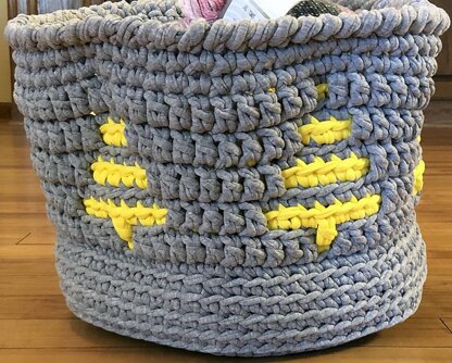 I highly recommend using the T-Shirt yarn here, as it is super heavy duty and durable! My basket stands up without things in it and can hold firewood for my fireplace! I have also used it for random yarn balls and various other things.