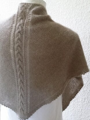 The Lakeside shawl is a simple but elegant triangular shawl designed for the luxurious Zealana Air Lace yarn. One braided cable, a touch of lace and picot bind off keeps the knitting rather easy while interesting.