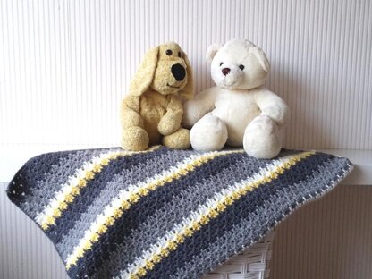 This gorgeous baby blanket in beautiful neutrals with a little bit of yellow would be a great homemade baby shower gift. A very popular larksfoot stitch gives this fresh, modern design a great texture. This stitch likes difficult, but it is an easily memorized pattern that works really quick up. Only what you need to know are just a few simple crochet stitches (chain, single crochet and double crochet).