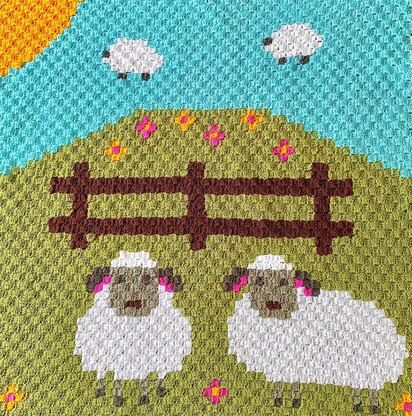 I designed this blanket for friend who loves Lambs. I wanted to make a blanket with a real springtime feel about it. This colourful graphgan has a couple of lambs in a flower meadow and some fun mini sheep clouds in the blue sky! The blanket measures 35 x 35 inch (90 x 90 cm) square and is a generous size for a baby, toddler or lap blanket. It's made using the corner to corner crochet technique (c2c) to produce a graphgan. The pattern includes a colour chart, line by line pattern instructions, finished border pattern and instructions on how to work corner to corner. It is essential that you know how to change colours in c2c, there are many videos online to help with this. I used a 4.5 mm hook and 8 shades of stylecraft DK yarn. Yarn amounts and shades are listed in the pattern. Any DK or aran weight yarn could be used ( the blanket would be bigger if using aran weight yarn)