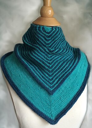 Lana begins like a traditional top-down shawl, then it's joined and worked in the round. Two-color garter stitch stripes give way to a wide knit border with staggered purl stitch accents. Two skeins of The Plucky Bello will make two identical cowls, or reverse the colors on the second cowl. Any fingering weight yarn that knits to gauge is acceptable and you need less than 150 yards of each color. Lana is quick to knit and easy to wear, adding warmth without bulk.