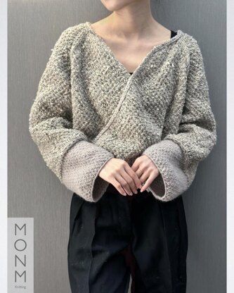Lantern jacket is inspired by the shape of lantern. This light textured jacket has a casual short fit and features with long sleeves, subtle cures and smooth texture transition. Snap buttons allow it to have a jacket look with overlapped front when it’s fully closed while also has a cardigan look when it’s open. Lantern jacket is worked from top down in one piece.