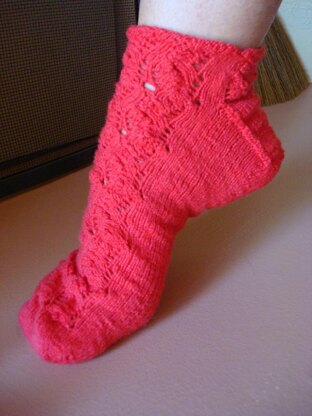 As with any race, someone has got to be last. At the Tour de France, the slowest rider left in the peloton has a special designation, the Lanterne Rouge. Riders even compete to be last rather then just near the back. This is where the sprinters who missed out on the Points Jersey and the domestiques can try for a little recognition. These lacy anklets are designed around a flame pattern in bright red yarn to honor those men who keep on going, even when it would be easier just to drop out. Salud!