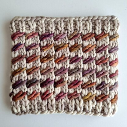 It's a quick and fun project that can be done in about two hours. It's a three-round repeat pattern and it takes only one skein.