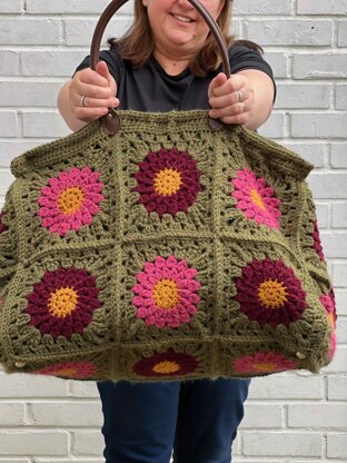 You can get the crochet pattern to make your own large crochet travel bag. This pattern is one size, and made in squares crocheted together