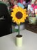 This is a large sunflower decor item with a stem. It requires some scrap card, brown felt, toy stuffing and 4 bbq skewers in addition to yarn. It stands roughly 12 inches tall from stem bottom to sunflower top. Pictured I have settled it in a can of gravel for display but it looks great even sat hung up.