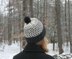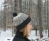 Yarn Quince & Co Chickadee Sport (100% Wool; 181 yards / 50 grams), 1 skein each: Sabine (CC1) and Audouin (CC2) Note: fitted version shown with Sabine as CC1 and Audoin as CC2. Slouchy version shown with Audouin as CC1 and Sabine as CC2.
