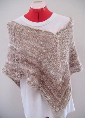 It is a symmetrical poncho with a wide neckline; great for a shawl pin. You can make it longer by working more repeats. Any yarn and colour will be great for it. Gauge is not important.