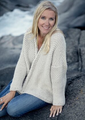 This soft and warm cardigan is knitted using a technique called the double brioche stockinette stitch.