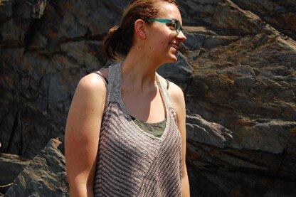 An asymmetrical apron tank with intersecting lines and unexpected chevrons.