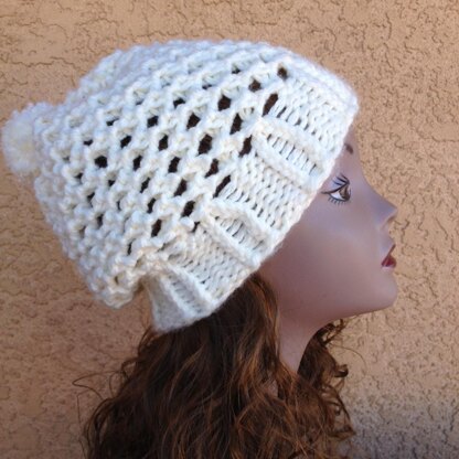 If you prefer a more lacy and lighter hat, you could knit this hat using one strand of a bulky yarn instead of the two strands as called for in the pattern.