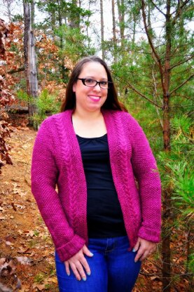 Laurel is the quintessential cozy cardigan, perfect for snuggling into whether you are staying in snuggling by the fire or headed out for an adventure on a chilly day. Laurel includes no waist shaping, instead allowing a bold back cable and seed stitch to give the fabric just the right amount of pull without being too snug. The sleeves are oversized in length and slightly in width to allow for free movement and for rolling up the sleeves at the cuff. This cardigan is knit using Equus from Shalimar Yarns, which provides not only an amazing stitch definition, but the 100% Merino creates a finished cardigan that you will want to live in.