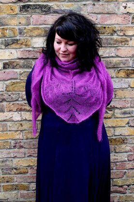 I have re-worked this gorgeous shawl in the glorious Rowan Kidsilk Haze and 5mm needles and the results are magnificent! The shawl is fabulously oversized and absolutely stunning.