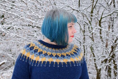Lausavisa is a traditional yoked jumper worked from the bottom-up. It uses a near-seamless construction which means minimal finishing is required.