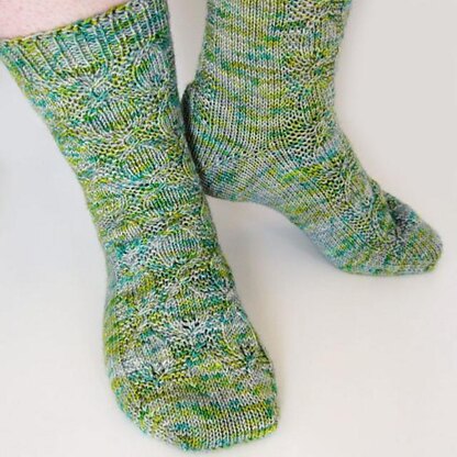 The Story: As a giveaway on my Instagram page I selected a winner named Katknits. She’s from Hawaii and always posts beautiful images of the ocean, flowers and plants. I was inspired by her pictures and decided to pay homage by designing a leaf-motif sock. Lau is the Hawaiian word for Leaf - thus, the Lausox. Get it?! A custom colorway has been designed for these socks as well. These are a delightfully stretchy sock and will accommodate a wide range of foot widths