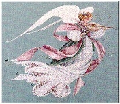 Model stitched on 32c Twilight Blue Linen. Approx stitch count 230 x 270. Approx design size 14.5" x 17". Threads used are DMC : 315, 316, 356, 500, 501, 502, 503, 543, 648, 676, 680, 730, 733, 754, 758, 778, 840, 841, 842, 869, 898, 902, 930, 932, 948, 3072, 3726, 3727, 3750, 3752, 3753, 3756, White & 284Z. Mill Hill Beads : 03034, 02024, 02018, 03007, 00557.
