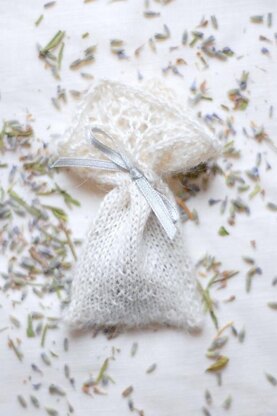 Quick little lace-topped lavender sachets, knit in one piece in the round, with barely any finishing. Suitable for a small last-minute gift, and to use up small amounts of left-over lace-weight yarn.