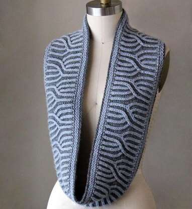The Lavington Cowl II is worked in the round. The cable effect used in this pattern is achieved through decreases and increases worked in every MC round. The brioche cowl is reversible with a different appearance on each side.