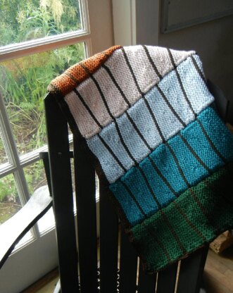 This squishy Garter Stitch blanket is highly adaptable to almost any weight yarn and monochromatic or wild color combinations. It’s especially suited to self-striping yarn when used with a neutral main color. As I knit this blanket, its tilting lines and colors made me dream of pale frosting and a teetering chocolate cake.