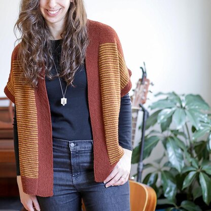 Layla is a kimono-inspired cardigan layering piece featuring contrasting color skinny stripes and knit up with worsted-weight yarn. With my favorite Quince & Co colors Gingerbread & Honey, I'm feeling a bit of a 70's vibe, which is what inspired the name (you know, that great song by Eric Clapton/Derek and the Dominos).