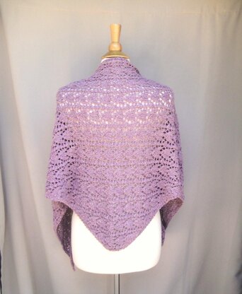 Shawl is knit sidewise from end to end, with the bottom edge shaped by increases and decreases