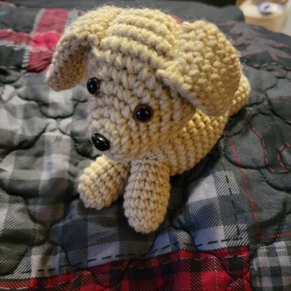 Lazy Dog pattern uses basic stitches. The pattern is written in US terminology. It does require sewing for ears, legs, and tail. You can use any yarn and hook you want with this pattern.