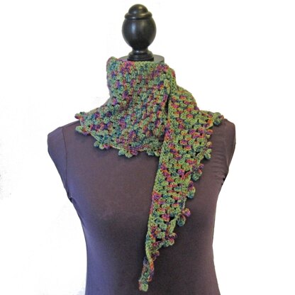 Show off gorgeous variegated yarn with a vivacious scarf that will bring joy to any outfit. Style it as scarf, wear it around your hips as a belt, or channel your inner flower child when you don it as a hair kerchief. Lea in Bloom starts with a unique crocheted edging featuring petal stitches. The shaping comes to life as the interior of the scarf in worked in ever-growing rows.