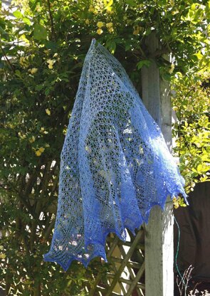 Leadlight is a semi-circular shawl knitted from the top down. It is an all-over lace shawl with a three stitch garter edging; the lace is knitted on the right side only. It has both written instructions and charts. The lace patterns are relatively simple, but the structure adds a bit of a twist.