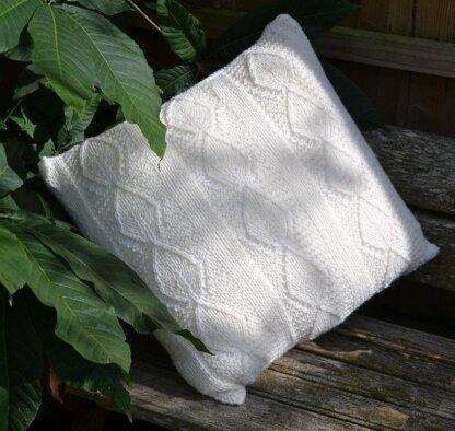 This cushion cover is a fairly quick and easy knit. It is knitted in Aran wool, with Size 6 mm. It fits a 50cm cushion pad, so is quite big.