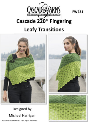 Leafy Transitions Shawl in Cascade 220 Fingering - FW231 - Downloadable PDF is a free Intermediate Knitting pattern by Cascade Yarns, available as a Downloadable PDF and includes instructions in English. Super fun to make, this pattern could be your next masterpiece!