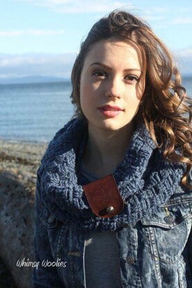 Fabulous basket weave stitch scarf, cuffed in leather, is trendy and easy to make. Match it up with the included boot cuffs pattern and you have a great set. Instructions for leather cuff included.