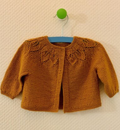 The Leaves Cardigan is worked seamlessly from the top down, starting with a circular yoke, then working the body and the sleeves separately. The cardigan is worked in reverse stockinette. The 6-stitch buttonbands are worked together with the rest of knitting in garter stitch.