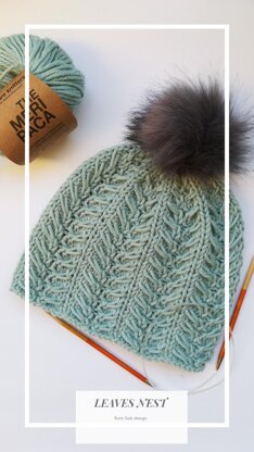 Knitted hat with we are knitters The Meripaca. 1 ball needed for this hat. Needles: 5.00mm 40cm circular needles. There is 3 rounds and 10 sts repeat knitting 4 sts left and right cables.